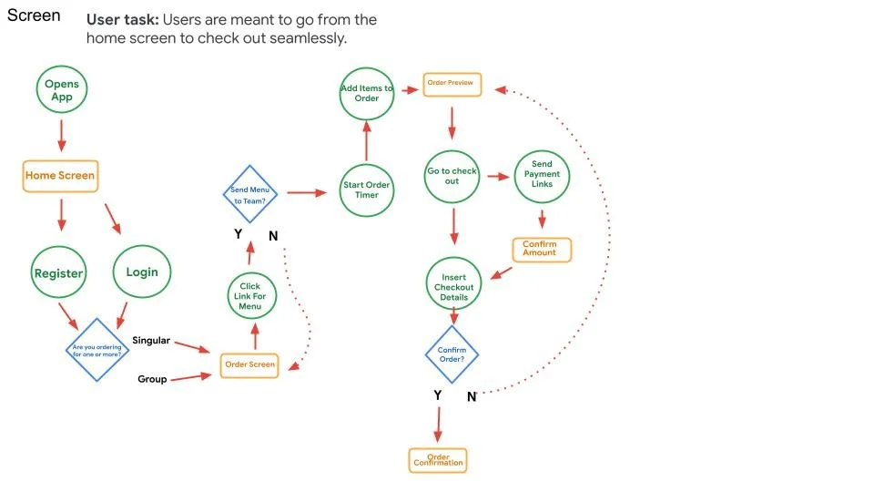 The roadmap of how I am going to get users from the opening of the application to a completed order